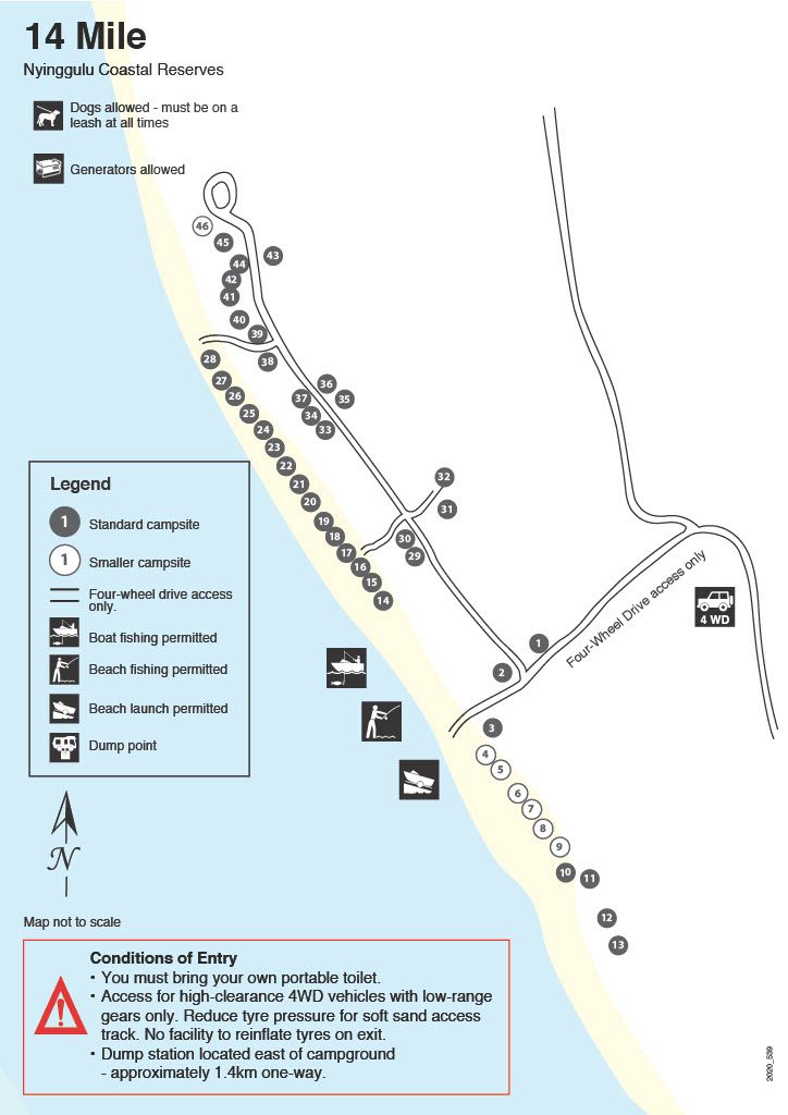 Reduce tyre pressure for soft sand access track. No facility to reinflate tyres on exit.